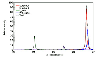 Calculation of the several peaks one can get for a single reflection when unfiltered x-rays are used.