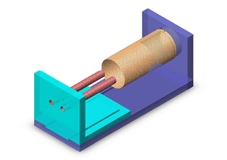 An illustration of the testing fixture. The small tubes are the sense and sample coils and the large coil is the field coil.