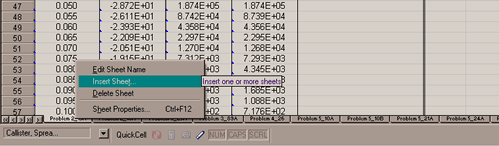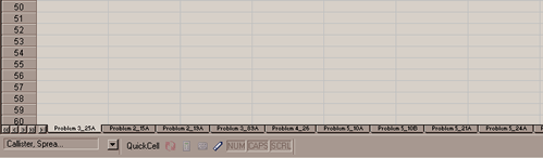 | To move a sheet simply drag the tab to the desired location. Note that the Problem 3.25A sheet has been moved ahead of the chapter 2 sheets. |