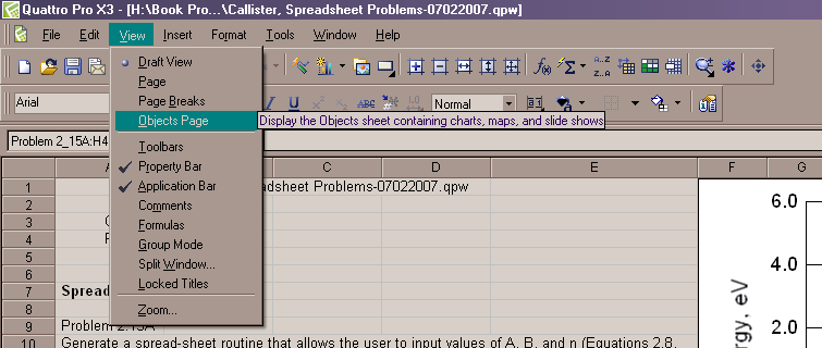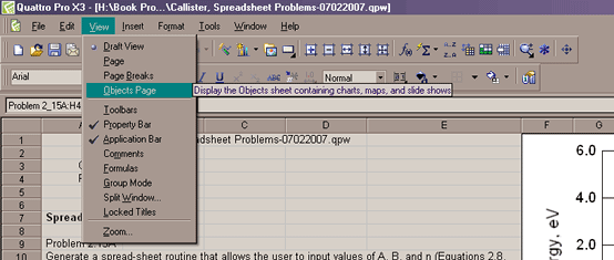 | The "Objects Page" item under the "View" menu will displays the objects sheet where you can access all of the notebook's charts and similar objects directly. |